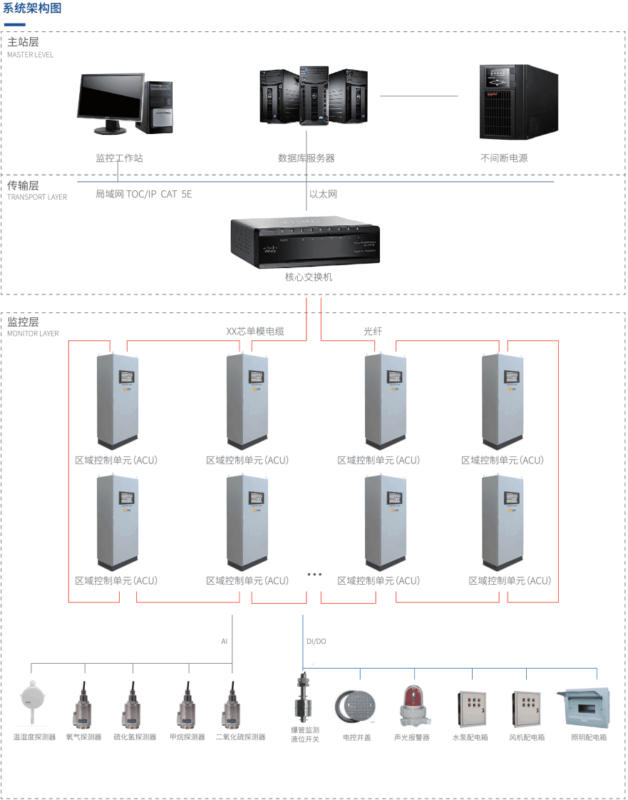 综合管廊整合了维持城市功能的自来水、煤气、电力、通信管线,如果管廊内部环境和设备出现问题,将造成沿线城市功能的瘫痪。国家标准《城市综合管理管廊工程技术规范GB50838-2015》明确规定:在综合管廊建设中应设置相关环境与设备监控系统,以确保整个综合管廊的安全运行。
